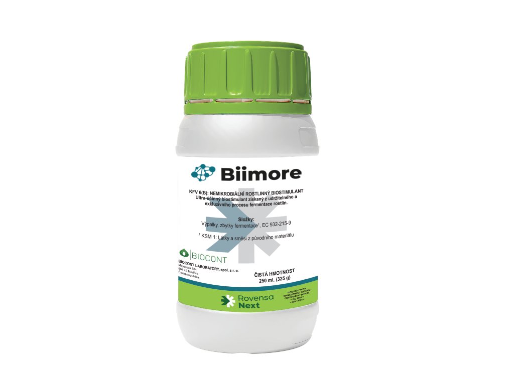 Biimore obsahuje produkty fermentace specifického kmene bakterie Corynebacterium glutamicum. Tyto látky mají vliv na expresi genů a ovlivňují metabolické procesy, které následně zlepšují vývoj, zrání a velikost plodů a vedou k celkovému zvýšení výnosů. Zvyšuje fotosyntetickou aktivitu, produkci cukrů, ukládání draslíku, zlepšuje stavbu buněčných stěn a membrán.